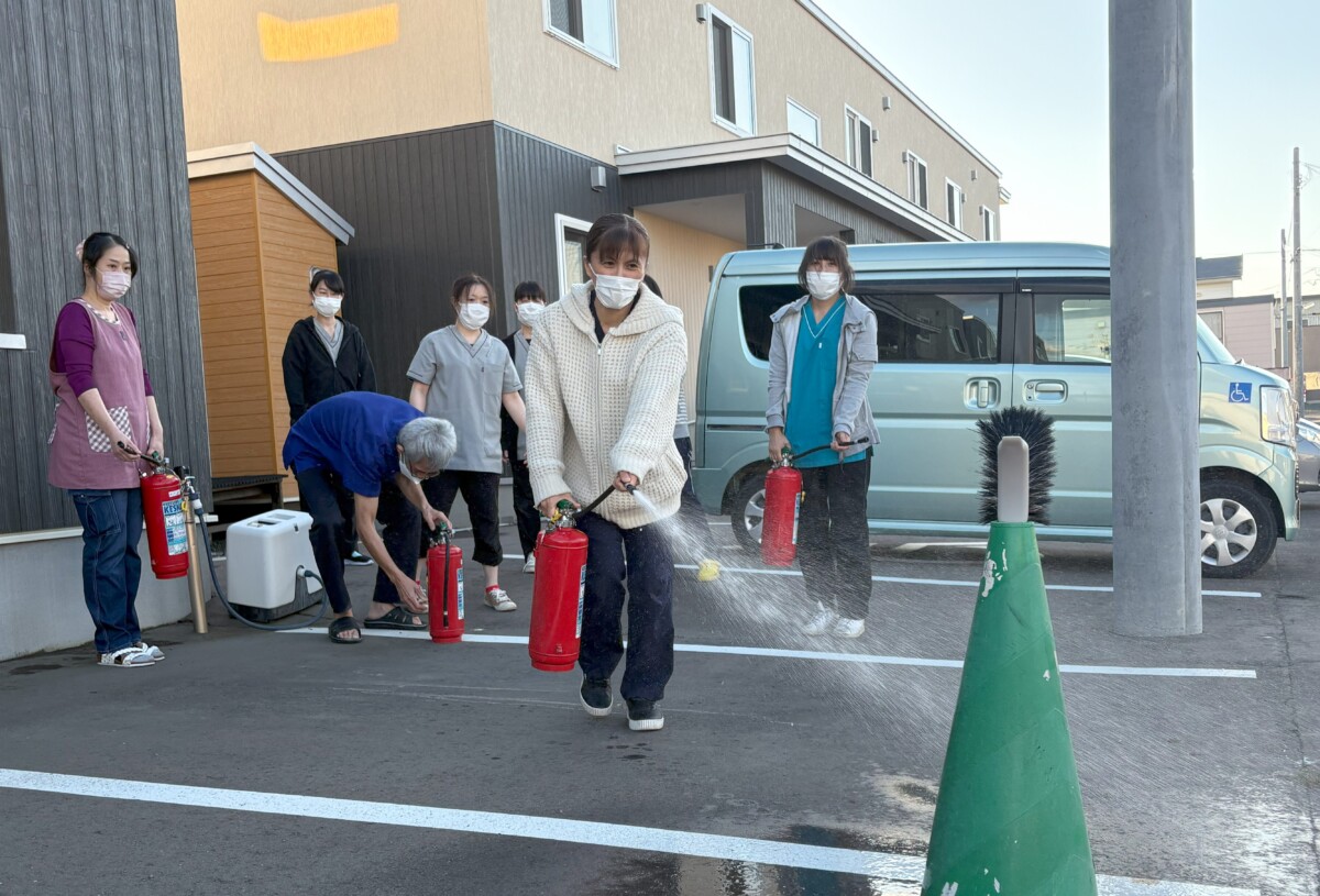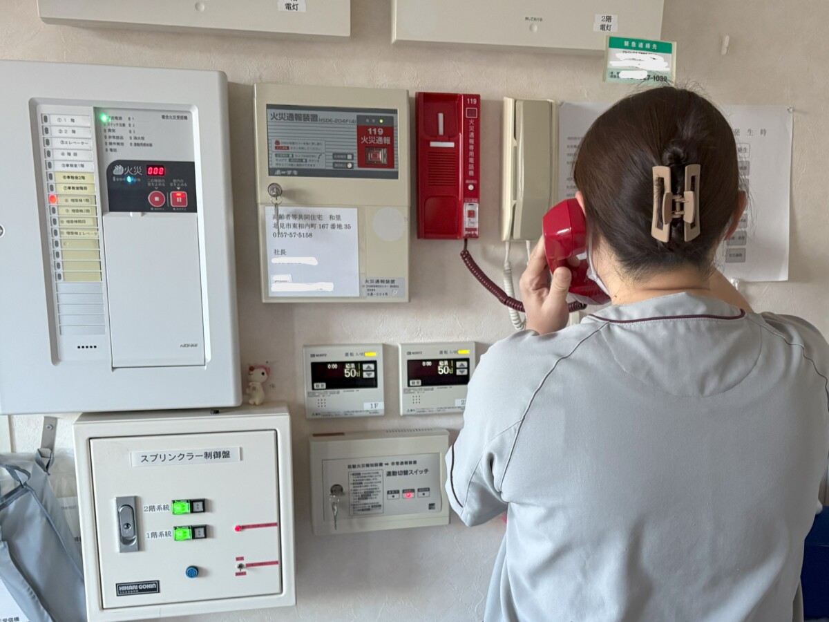 火災を想定した「通報」「消火」「避難」の総合訓練です。