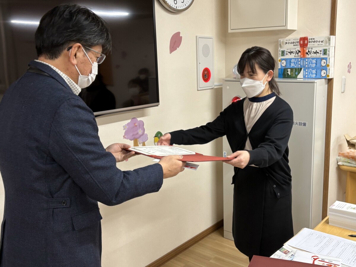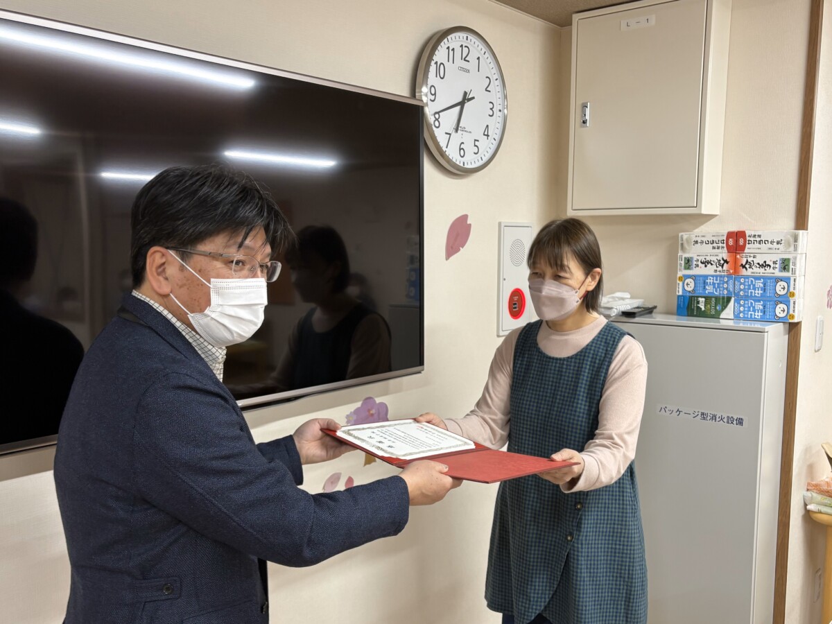 永年勤続10年を迎えた職員に対して、社長から感謝状と金一封が贈られました。